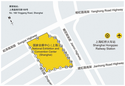 目的地:國家會展中心,地址是盈港東路168號(南門)。鐵路上海虹橋站約耗時18分鐘,虹橋機場約耗時30分鐘,浦東國際機場約
